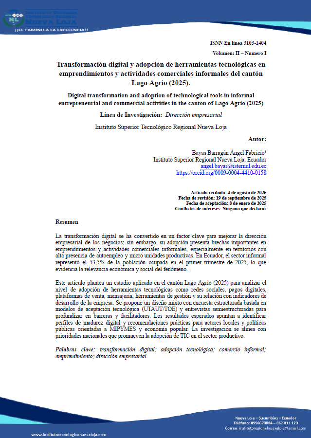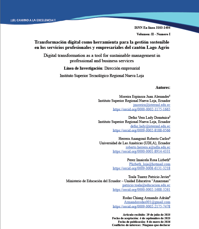 La Revista Científica Multidisciplinaria INNOVATECH presenta investigaciones orientadas al análisis de problemáticas reales del contexto local y regional, con énfasis en la innovación, la sostenibilidad y el desarrollo tecnológico. En esta edición se incluye un estudio que analiza la transformación digital como un factor clave en la gestión sostenible de las empresas de servicios profesionales y empresariales del cantón Lago Agrio, Ecuador.